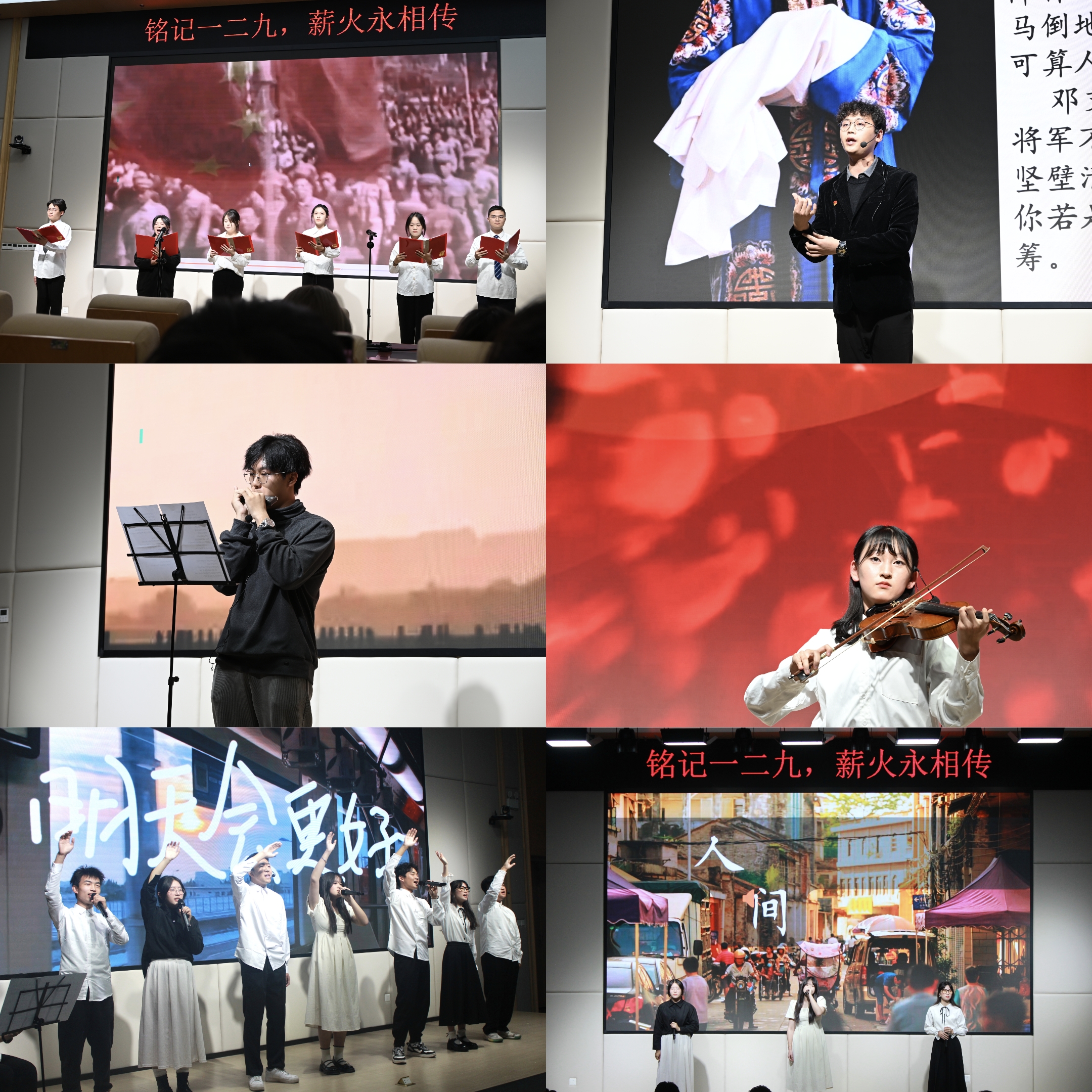 植物保护学院“一站式”学生社区青果助力站艺术团成员们以朗诵、合唱、口琴独奏、京剧、小提琴独奏等多样的艺术形式,向革命先辈们致敬,唤起同学们的民族意识与团结精神,激发同学们的爱国情怀。