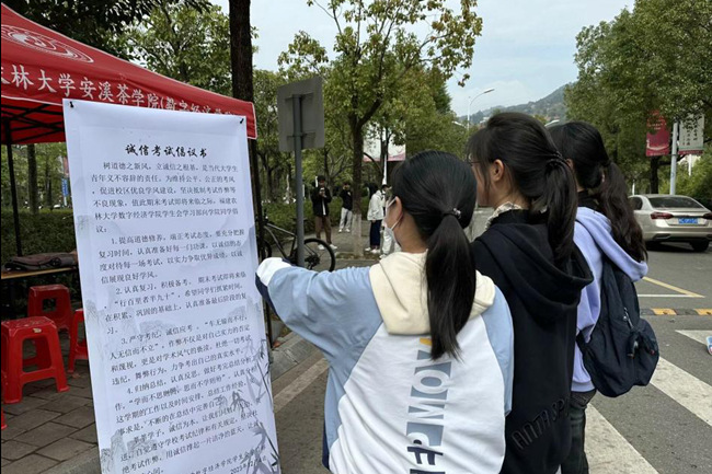 活动开始前,学院组织召开全体班级学习委员工作会议,集中学习诚信考试相关内容,强调诚信考试教育活动的重要性,并部署具体工作安排。会后各班级根据要求召开有关诚信考试的主题班会,向同学们强调考场纪律,并签署诚信考试承诺书。期间,学院连续多日在大学生活动中心开展主题墙签名活动,号召全院学生考之以诚,答之以信。