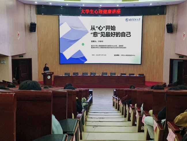为提升本科新生心理健康素养,帮助本科新生更好适应大学生活。12月14日晚,williamhill英国官网大学生心理健康指导中心邀请福州大学心理健康教育与辅导中心主任许琳玲开展题为《从“心”开始,“愈”见最好的自己》的大学生心理健康讲座。讲座以博学楼报告厅为线下主会场,线上钉钉同步转播的形式开展,三个校区共计1300余名学生参与本次讲座。