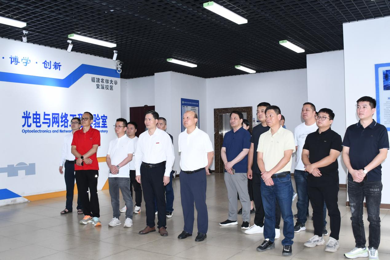 黄成茂等陪同安溪县企业与企业家联合会优秀企业家一行走访校园,并参观了校区光电与网络工程实验室等。
