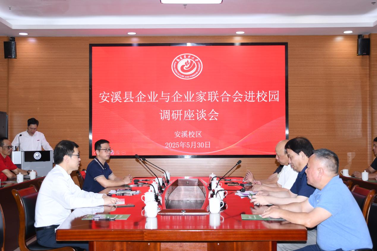 5月30日下午,安溪校区邀请安溪县企业与企业家联合会年轻优秀企业家进校调研并召开座谈会,校区管委会主任黄成茂主持会议,副书记张云帆、吴义炳参加座谈。