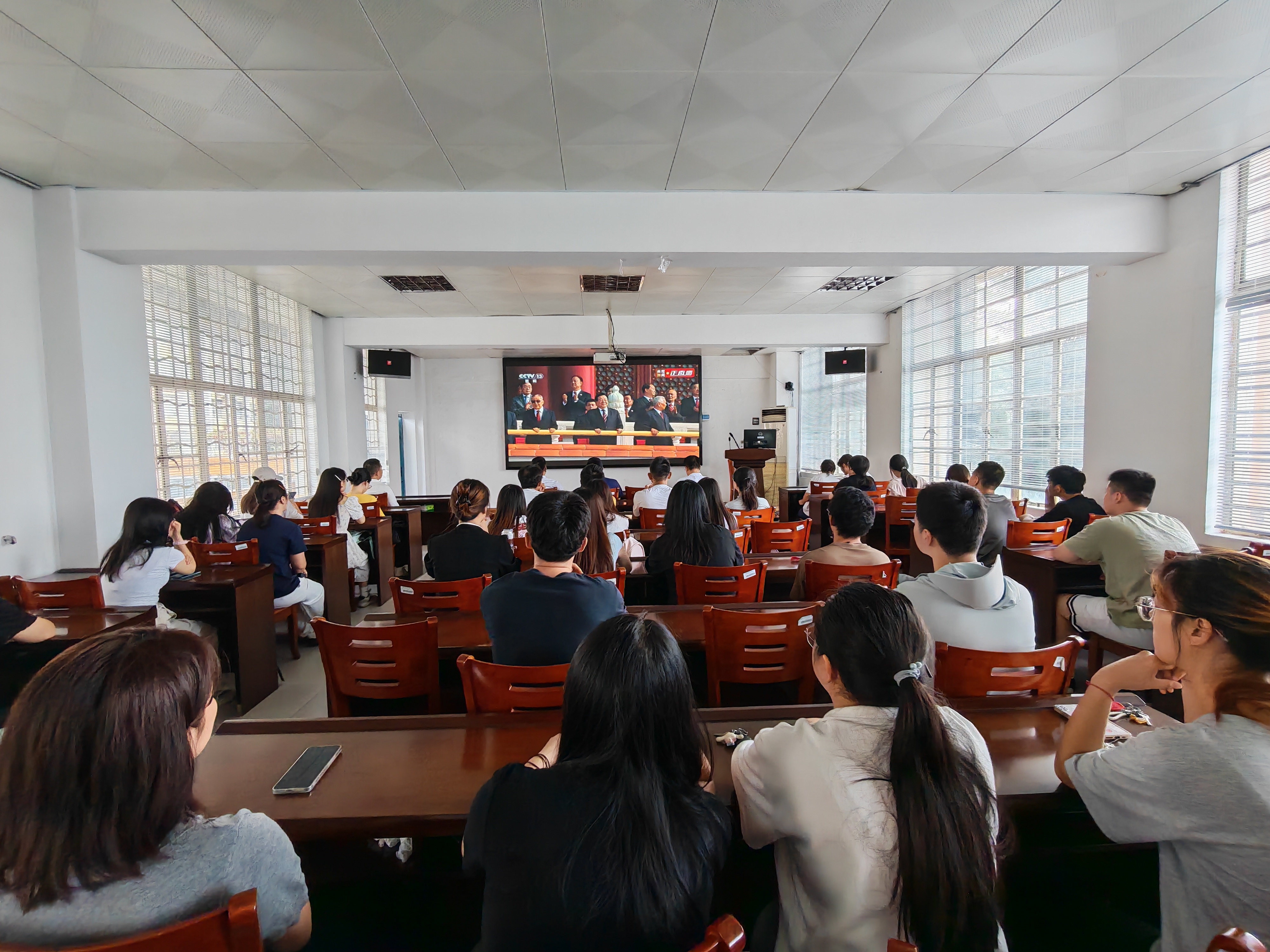 观看过程中,师生全神贯注、心潮澎湃,不时因阅兵式所展现的国家力量而报以热烈掌声。大家纷纷表示阅兵仪式令人振奋,展现了国家繁荣昌盛的新面貌,深刻感受到国家的强大与民族的自豪,深切体会到今日的和平来之不易。今后将以革命前辈为榜样,努力刻苦,锤炼本领;以历史为警示,奋勇前进、不甘落后;以奋斗为指引,主动担当、积极作为,为学校奋进国家“双一流”高校,为实现中华民族伟大复兴的中国梦贡献一份力量。