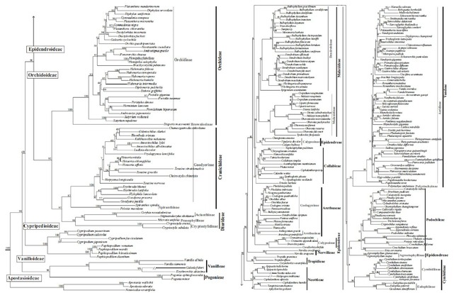 团队首次构建占比总属数98.8%的中国兰科属级生命之树,提出了中国兰科5亚科、17族和21亚族的新分类系统,解决了长久以来的系统学争议;明确了兰属、蝴蝶兰属、石斛属等重要类群物种多样性成因,揭示了一系列关键驱动因子,为兰科植物保护地建设、种质鉴定和育种奠定了重要理论基础。