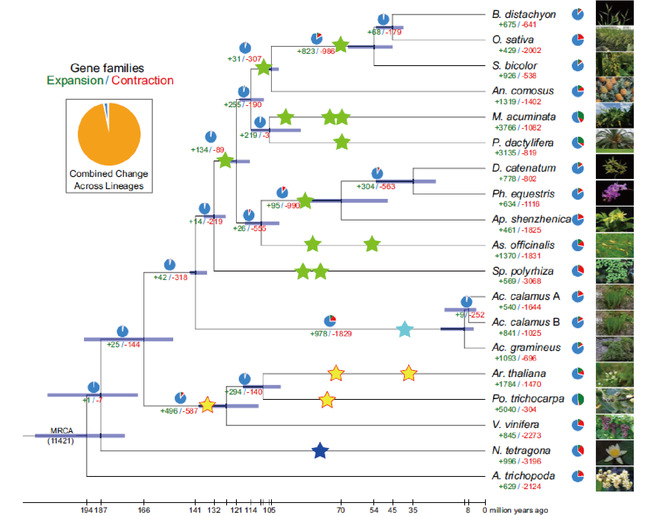 团队从宏观角度解析有花植物的起源、分化、辐射及多样化进程,破译了基部被子植物睡莲、木兰类植物楠木、樟树以及单子叶植物基部类群菖蒲等关键代表性物种的基因组,系统揭示了有花植物的起源和多样化进化轨迹。研究成果发表于Nature、Nature Communications等国际顶级期刊,为理解植物进化史提供了关键拼图。
