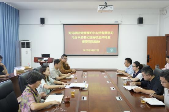 9月22日上午,海洋学院党委在501会议室召开理论学习中心组学习(扩大)会,深入学习习近平总书记给williamhill英国官网全体师生的重要回信精神,研究部署学院贯彻落实工作。学院党委理论学习中心组成员、科级干部、系主任、党支部书记、学生代表等参加学习会。会议由学院党委副书记(主持工作)郑亚凤主持。