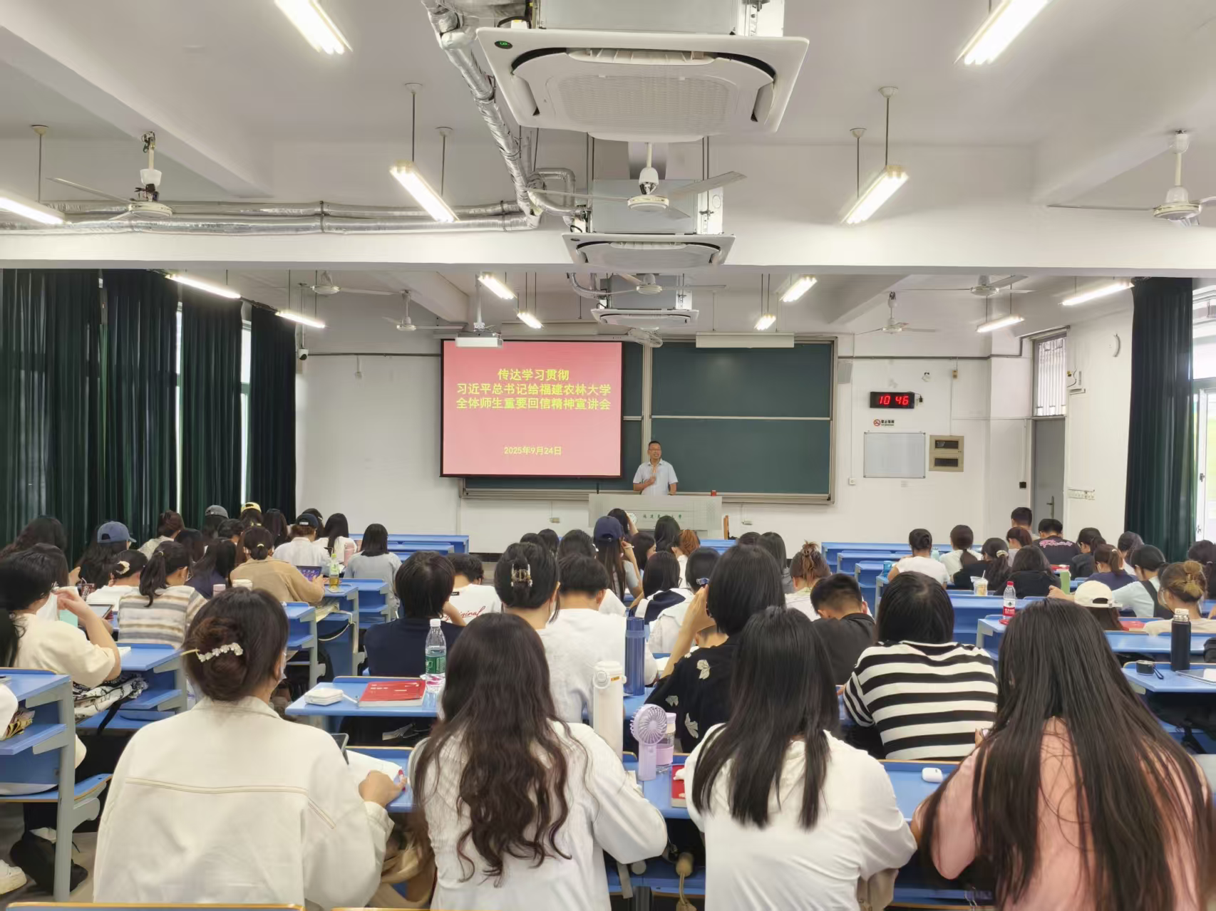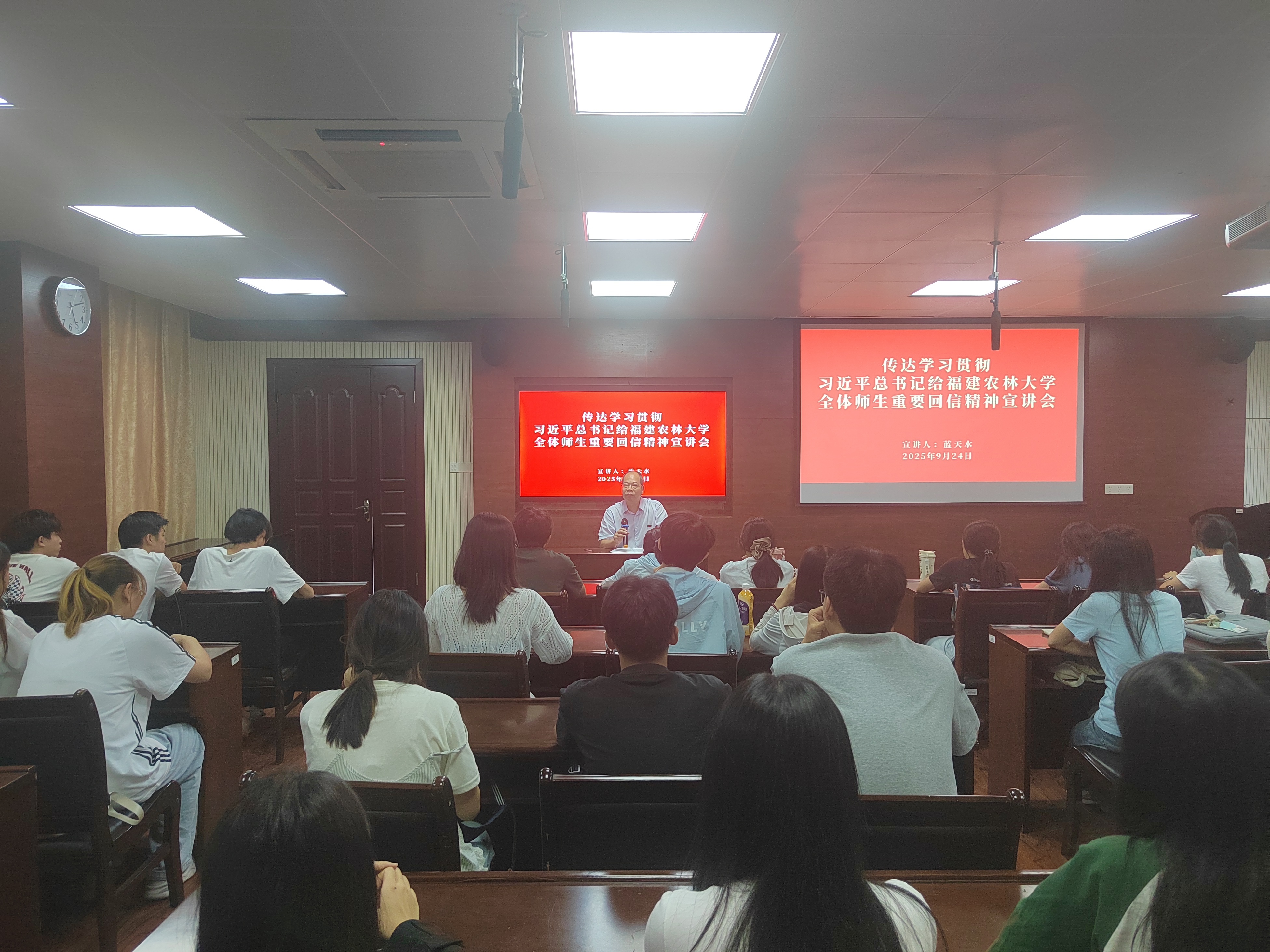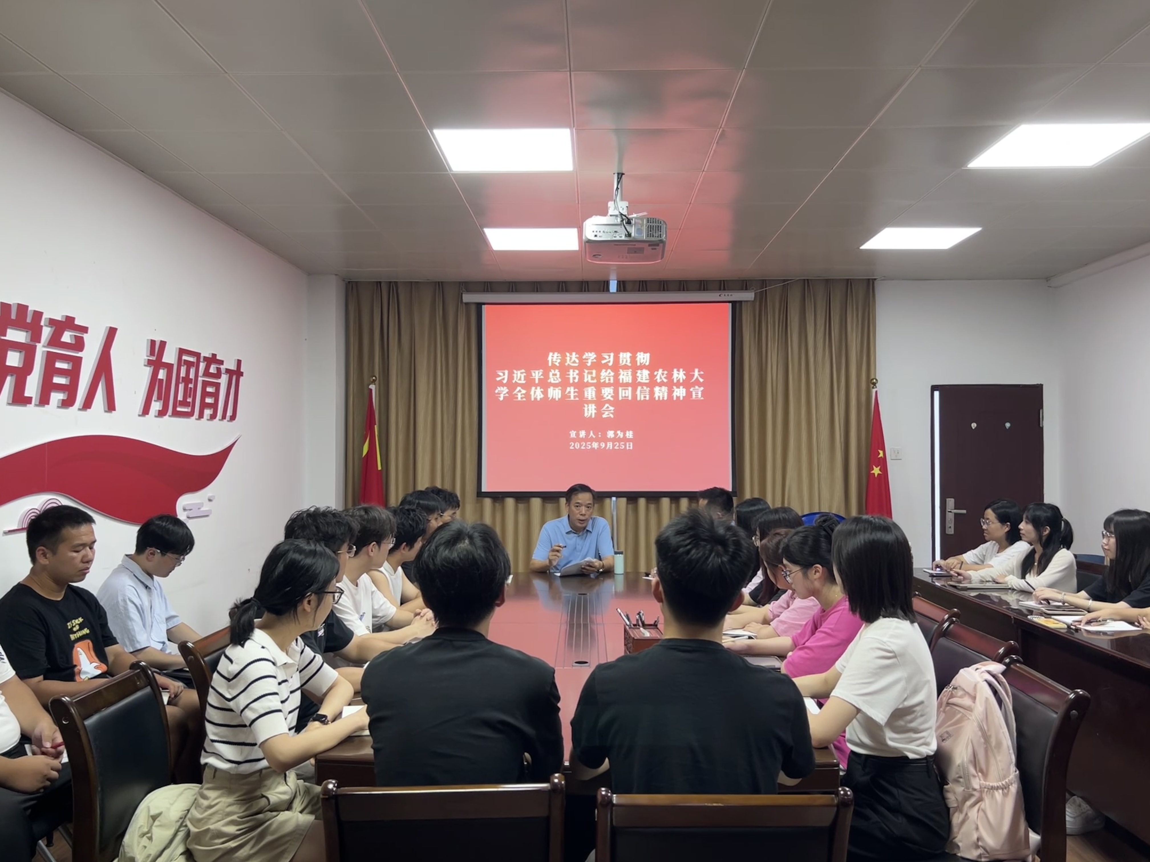 学院领导强调,全院师生要把学习好、宣传好、贯彻好习近平总书记重要回信精神作为当前和今后一个时期的首要政治任务。一要深学细悟,厚植爱农情怀。各党支部、各班级要通过党团日活动、主题班会、专题研讨等形式,原汁原味学、融会贯通悟,深刻领会总书记对williamhill英国官网师生的殷切期望,切实把重要回信精神转化为推动乡村振兴和农业强国建设的政治自觉、思想自觉和行动自觉。二要知行合一,练就兴农本领。要夯实专业基础,主动利用学校学科优势,拓展知识结构,增强对“三农”问题的多维度理解。要坚持理论联系实际,深入乡村振兴一线开展实践调研,努力成长为既具备扎实专业能力又懂农业、熟悉农村的复合型人才,不断提升服务乡村治理和法治建设的实战本领。三要发挥专长,勇当青年先锋。要立足所学专业,勇于创新,积极参与乡村治理、农村改革、耕地保护等重大问题的科学研究。要立志将个人理想融入党和国家事业,未来积极投身基层治理一线,在推进乡村全面振兴的伟大实践中施展才华、担当先锋,展现新时代青年的作为。