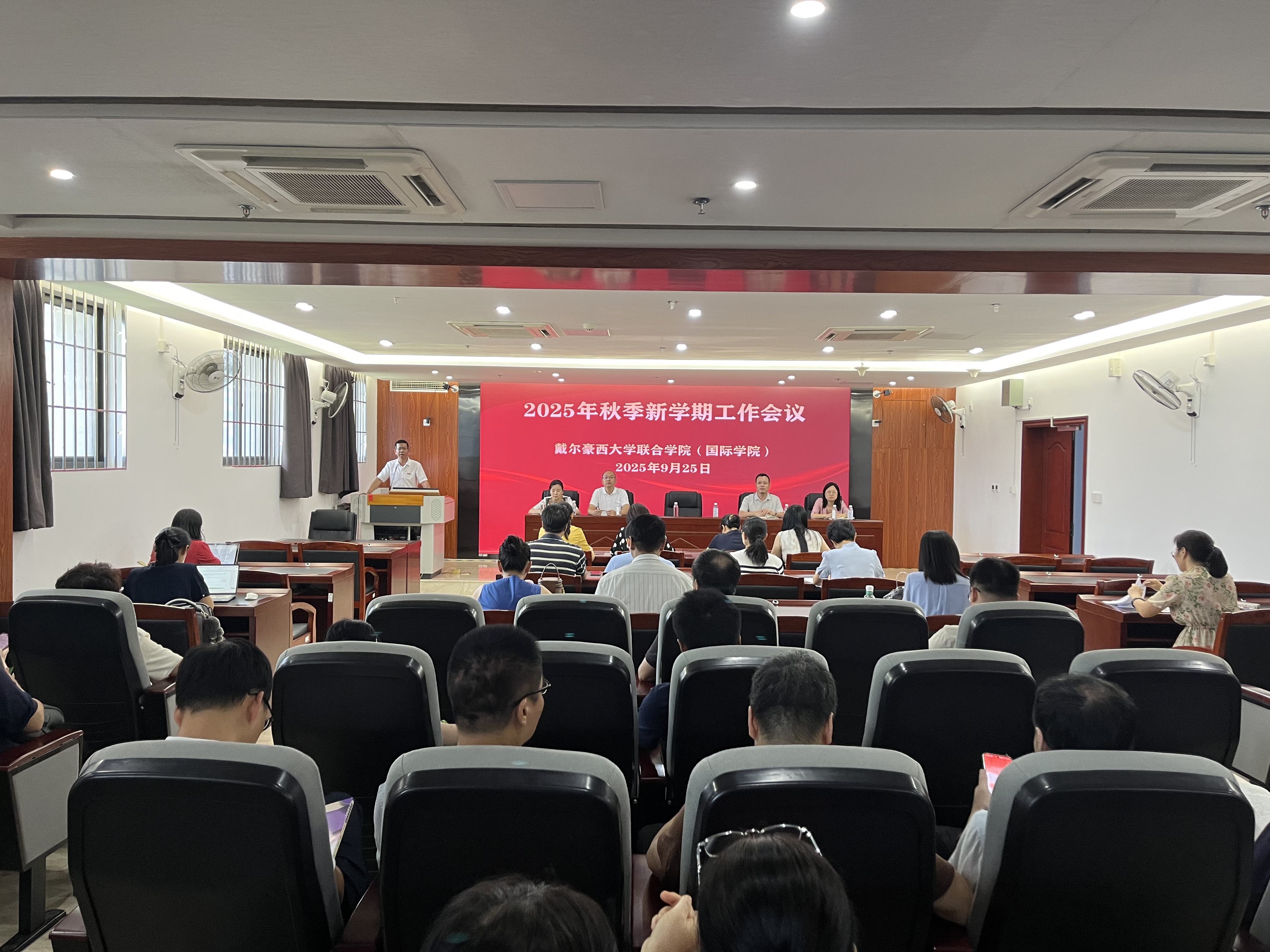 9月25日下午,戴尔豪西大学联合学院(国际学院)在福州大学城校区仁德楼1204会议室召开2025年秋季新学期工作会议,学院全体教职工参加会议。会议由学院党委书记林平主持。