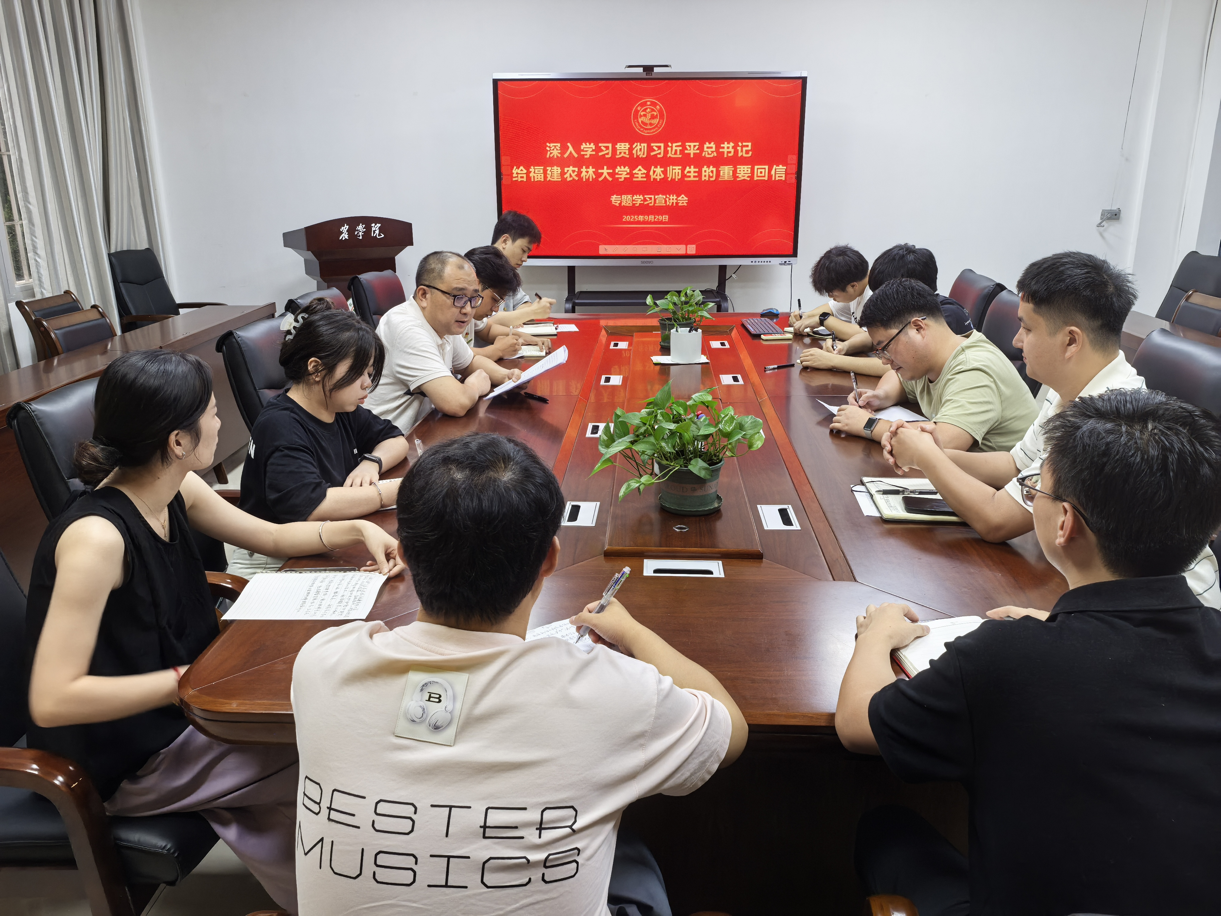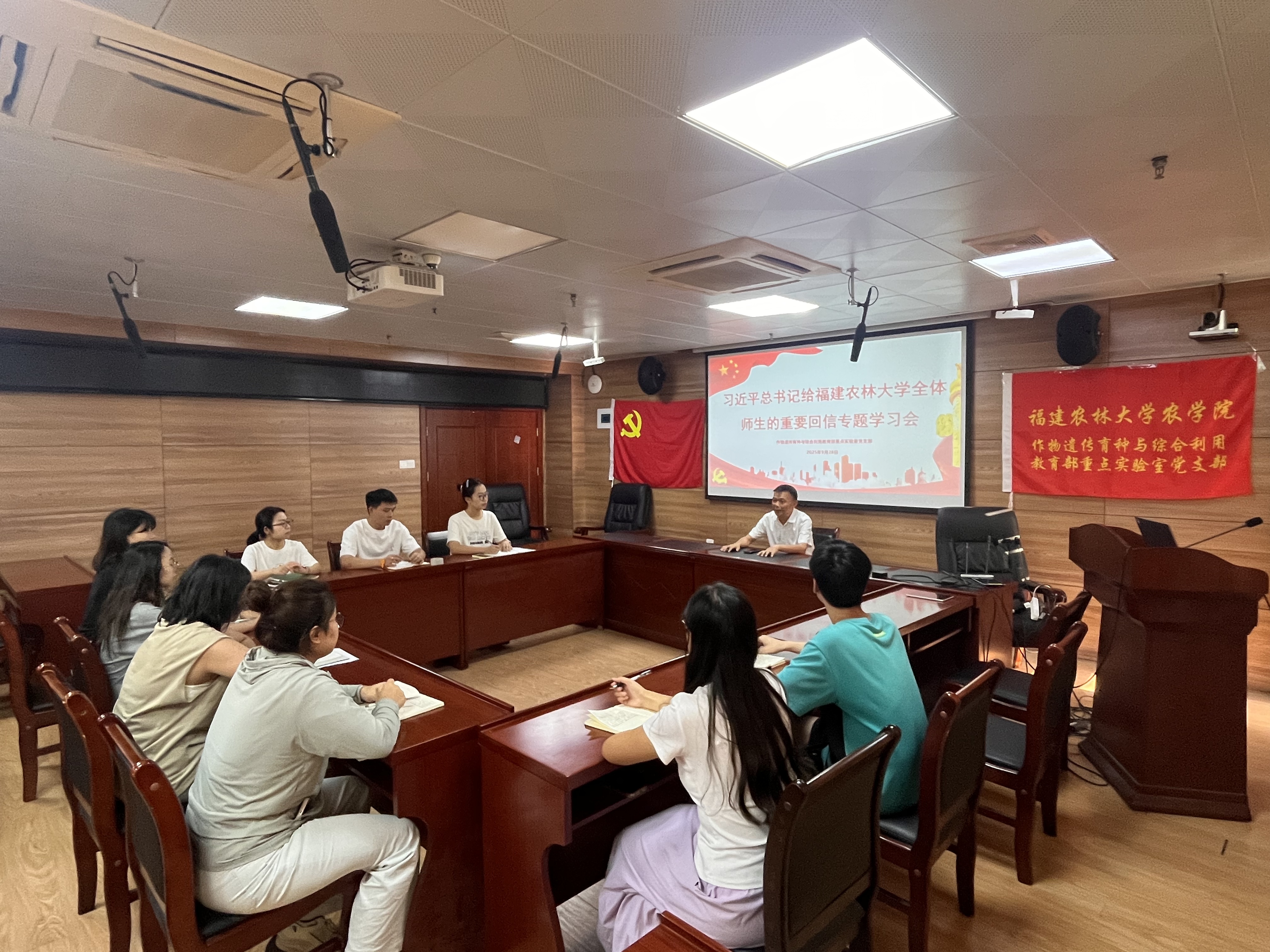 学院领导强调,一要提高政治站位。全体师生要把学习好、宣传好、贯彻落实习近平总书记重要回信精神作为当前和今后一个时期的首要政治任务,原原本本学、深入思考学、联系实际学,真正做到学思用贯通、知信行统一,将回信精神转化为推动学院各项事业高质量发展的强大动力。二要聚焦立德树人。坚持不懈用习近平新时代中国特色社会主义思想铸魂育人,深化教育教学改革,打造高水平人才方阵,着力引导广大学生崇德尚学、耕读力行、守正创新,胸怀“国之大者”,以爱农情怀和兴农本领书写“端牢中国饭碗”“守住大国粮仓”的青春答卷。三要奋楫争先拓新。要在学科建设、人才培养、科学研究、社会服务等方面砥砺前行,聚焦种业“卡脖子”技术攻关与智慧农业前沿技术研发、系统集成,把更多好技术送到田间地头,以实际行动彰显新担当新作为,为学校奋进国家“双一流”添砖加瓦。