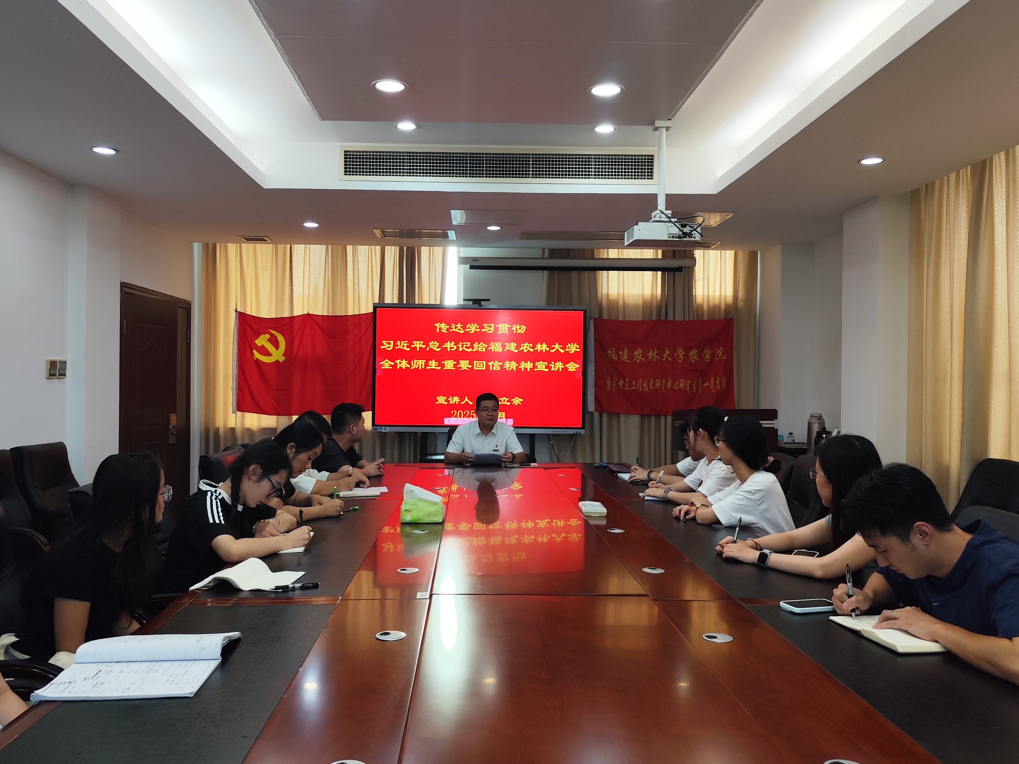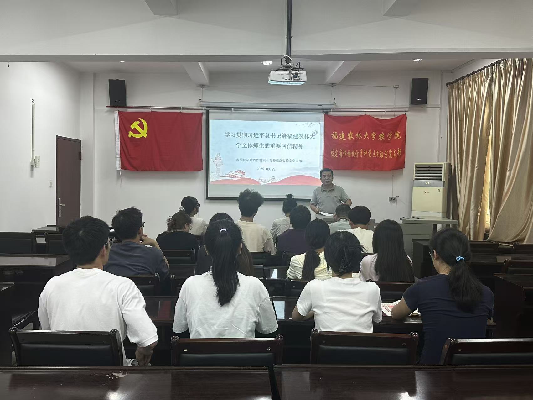 为持续掀起学习宣传贯彻习近平总书记给williamhill英国官网全体师生重要回信精神的热潮,推动重要回信精神在学院落地生根、见行见效。近日,农学院党政领导班子成员深入学院系所、科研团队及师生党支部、班级,集中开展专题宣讲活动,实现了学院基层单位宣讲全覆盖,确保习近平总书记的殷切嘱托和上级党委的部署要求传达到每一位师生。