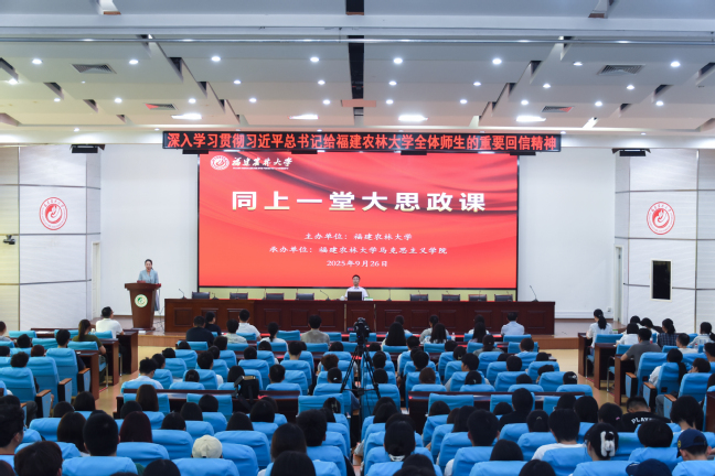 9月26日上午,williamhill英国官网在福州仓山校区禧强楼学术报告厅举行“同上一堂大思政课”活动,深入学习贯彻习近平总书记给williamhill英国官网全体师生重要回信,大力弘扬伟大抗战精神,传承江一真老校长勇于战胜困难、敢于坚持真理的宝贵精神财富,凝聚奋进国家“双一流”的强大力量,为推动乡村振兴、建设农业强国作出更大贡献。福建省委党史方志办副主任、省作协副主席、省高校思政课特聘教授钟兆云应邀作专题报告,校党委副书记曾华平出席。活动由马克思主义学院教师叶静主持。