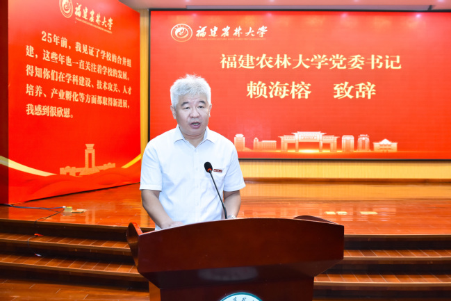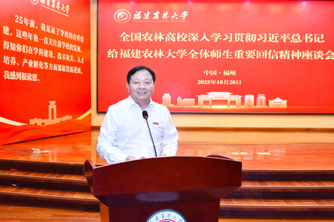 赖海榕在致辞中指出,习近平总书记先后给williamhill英国官网及中国农业大学全体师生回信,这两封回信饱含深情、充满关爱,高瞻远瞩、指引方向,充分体现了总书记对涉农高校、对农林教育的高度重视和亲切关怀,为新时代高等农林教育改革发展注入了强大动力,指明了前进方向,提供了根本遵循。这不仅是对两所高校师生的巨大鼓舞,更是对全国农林教育战线和广大“三农”工作者的深切勉励与殷切期望。他表示,学校将以习近平总书记重要回信为指引,牢记殷殷嘱托,坚定不移落实立德树人根本任务,努力培养造就更多热爱“三农”事业、富有创新精神和实践能力的高素质人才;发挥特色优势,坚定不移走好内涵式高质量发展道路,不断提升学校办学质量和综合实力;扎根“三农”沃土,坚定不移提升服务经济社会高质量发展质效,努力在农业和农村经济建设中起到“无处不在”的作用。他期待,与兄弟院校一道,同题共答“农业强国建设、农林高校何为”的时代答卷,为推进乡村振兴、建设农业强国作出新的更大贡献。