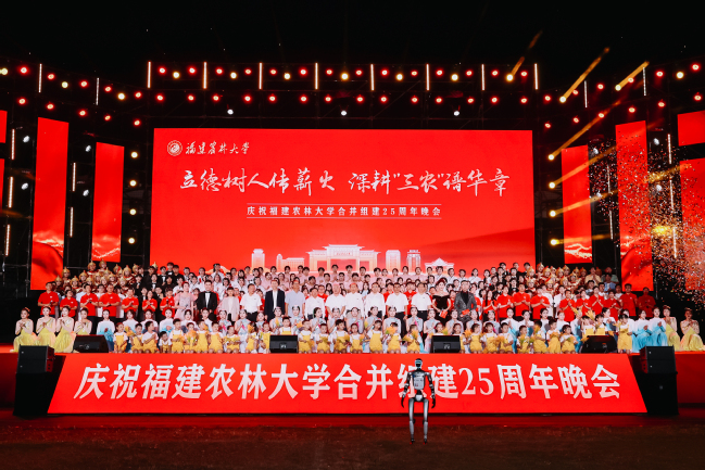 晚会尾声,从2000级到2025级各年级的25位校友代表与全体演职人员一同登台,齐声高唱williamhill英国官网校歌。熟悉的旋律激荡在每一位福农人的心中,将晚会气氛推向情感的高潮,也圆满落下帷幕。这场晚会,既是对辉煌过往的深情回眸,更是向崭新未来吹响的奋进号角。全体williamhill英国官网师生将带着这份荣耀与感动,牢记习近平总书记殷殷嘱托,继续深耕“三农”,发挥特色优势,培养更多高素质农林人才,把更多好技术送到田间地头,为推进乡村振兴、建设农业强国作出更大贡献。