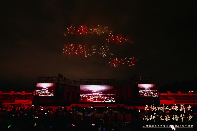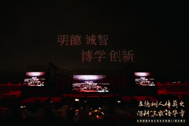 震撼的无人机表演引起现场观众的共鸣,1000架无人机以夜空为幕,依次绘就了学校1936年与1940年的办学起点、2000年合并组建的历史时刻、熠熠生辉的校徽与校训、立体的“25”周年标识、学习贯彻重要回信精神等12幅光影画卷,表达了学习贯彻习近平总书记重要回信精神的决心和对学校明天更美好的真挚祝福。