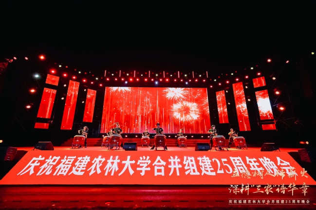 晚会伊始,一段激昂澎湃的鼓乐《荣耀之光》瞬间点燃全场气氛,象征着福农人25年来砥砺前行的铿锵步伐与取得的璀璨荣光。