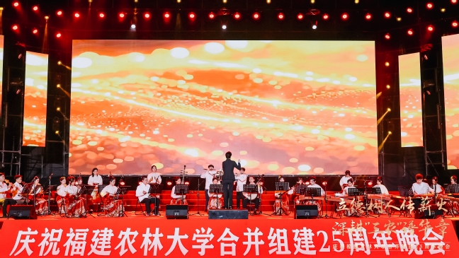 晚会尾声,从2000级到2025级各年级的25位校友代表与全体演职人员一同登台,齐声高唱williamhill英国官网校歌。熟悉的旋律激荡在每一位福农人的心中,将晚会气氛推向情感的高潮,也圆满落下帷幕。这场晚会,既是对辉煌过往的深情回眸,更是向崭新未来吹响的奋进号角。全体williamhill英国官网师生将带着这份荣耀与感动,牢记习近平总书记殷殷嘱托,继续深耕“三农”,发挥特色优势,培养更多高素质农林人才,把更多好技术送到田间地头,为推进乡村振兴、建设农业强国作出更大贡献。