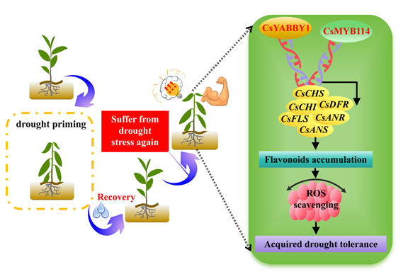 Fig. 2 Model of CsYABBY1- and CsMYB114-mediated acquired drought tolerance of tea plants by regulating flavonoid biosynthesis