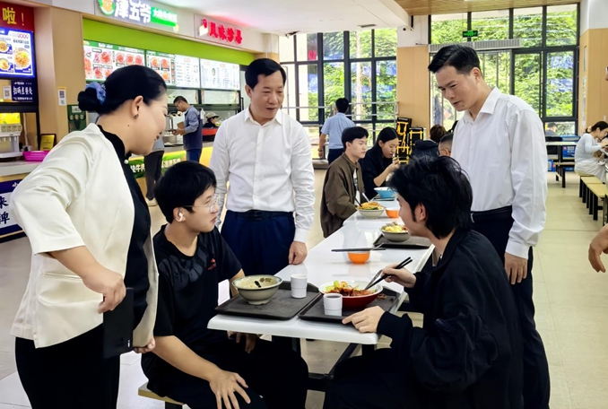 调研期间,曾华平一行实地察看了校区环境及“一站式”和美社区、文体活动场所、学生宿舍、食堂及新教学楼等重点区域。