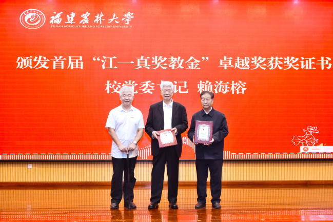 林占熺、陈栩作为获奖教师代表先后发言,表示作为首届“江一真奖教金”的获得者深感荣幸,这份荣誉不仅属于个人,更属于团队,属于所有把论文写在大地上、把技术送到田间地头的农林大人。今后将继续传承弘扬江一真老校长“不惧困难、坚持真理、一生求真”的崇高品格,积极践行他“扎根大地办教育”的办学理念,努力产出更多高水平科研成果,培养更多高素质农林人才,为推进乡村振兴、建设农业强国作出更大贡献。