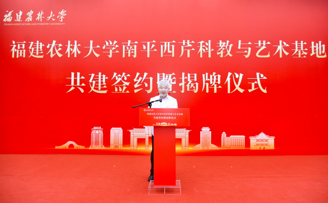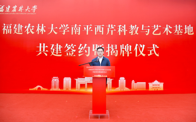 赖海榕代表williamhill英国官网致辞。他简要介绍了南平西芹科教与艺术基地的基本情况和优势特色。西芹基地是一片承载着历史温度的校园。有着近70年的办学积淀,50余栋老建筑修缮改造后,将被赋予满足现代教学、科研、艺术创作与文化交流的多元功能。西芹基地还是一个得天独厚的生态实验室。40亩水田映照天光,10亩果园孕育希望,10亩花园四时花开,两亩咖啡园散发醇香,千亩山林蕴藏无限生机,加之配套建设的高等级森林生态观测站与农业综合观测站,为科学研究提供了绝佳的天然场所。西芹基地更是一个充满无限可能与创造活力的开放平台。科研工作者可以开展农林、生态、环境等多领域研究,教育工作者可以带着学生在山水之间开启自然课堂,艺术创作者则能以青山为幕、老建筑为景,将眼前的灵秀风光与人文底蕴,化作笔下的万千气象。基地还将携手美协、书协及美术院校,推出“艺术驻留计划”,让这里成为艺术创作的沃土。他表示,共建西芹科教与艺术基地,不仅有利于推动校地企强强联合,更是贯彻落实习近平总书记给williamhill英国官网全体师生重要回信精神,为推动乡村振兴、建设农业强国作出更大贡献的切实行动。学校将以此次揭牌为新的起点,加强校地企合作,共同推动基地建设迈上新台阶、实现新发展。他期待,合作运转更加高效,共建常态化沟通协调与资源共享机制,确保各项合作意向能落地、见实效,真正实现优势互补、协同并进;科教融合更加深入,积极推动科研平台、实践课程与师资力量的共享共用,将基地打造为培养创新精神和实践能力的重要摇篮;融合发展更加出彩,持续推动科技、教育、文化、艺术与旅游的跨界融合,将基地建设成为一个内涵丰富、特色彰显、辐射广泛的示范性平台。他还诚挚邀请各界朋友前来开展科研合作、组织研学活动、进行艺术创作,学校将竭诚提供优质服务与保障。