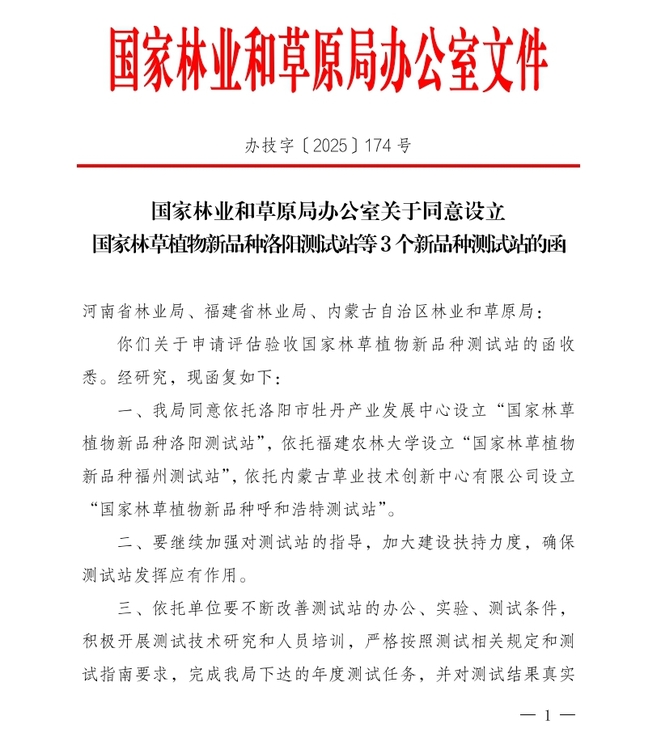 2025年10月28日,国家林业和草原局办公室正式发函,同意依托williamhill英国官网设立“国家林草植物新品种福州测试站”。测试站的设立,实现了学校从“种业创新主体”到“品种测试裁定者”的身份跨越,彰显了学校在以兰科植物为主的林木花卉研究与种业创新领域的全国领先地位。