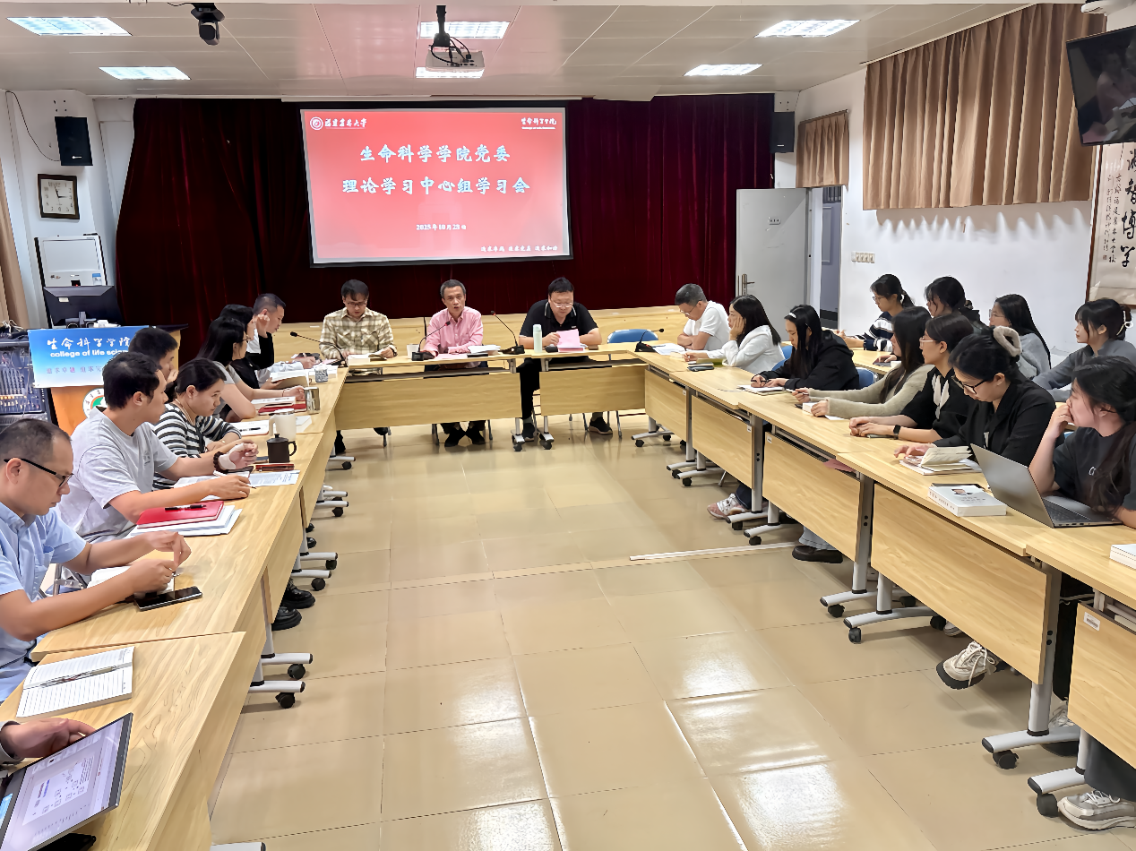 10月28日下午,生命科学学院党委在学院会议室召开理论学习中心组(扩大)会议,专题学习《习近平谈治国理政》第五卷。会议由学院党委书记余顺兴主持,院党委理论学习中心组成员、各党支部书记参加学习。理论中心组成员结合学习内容和工作实际开展了深入交流研讨。