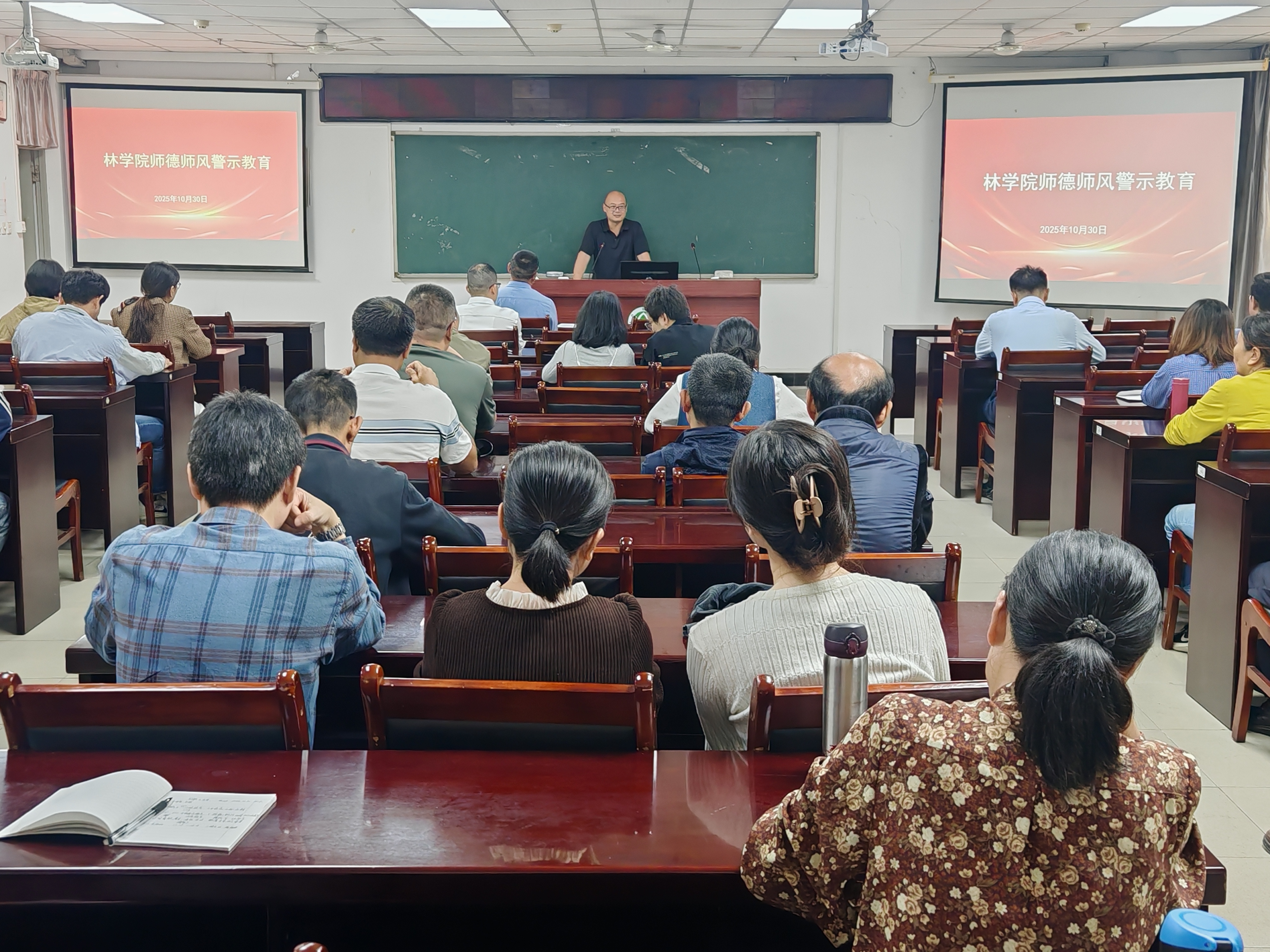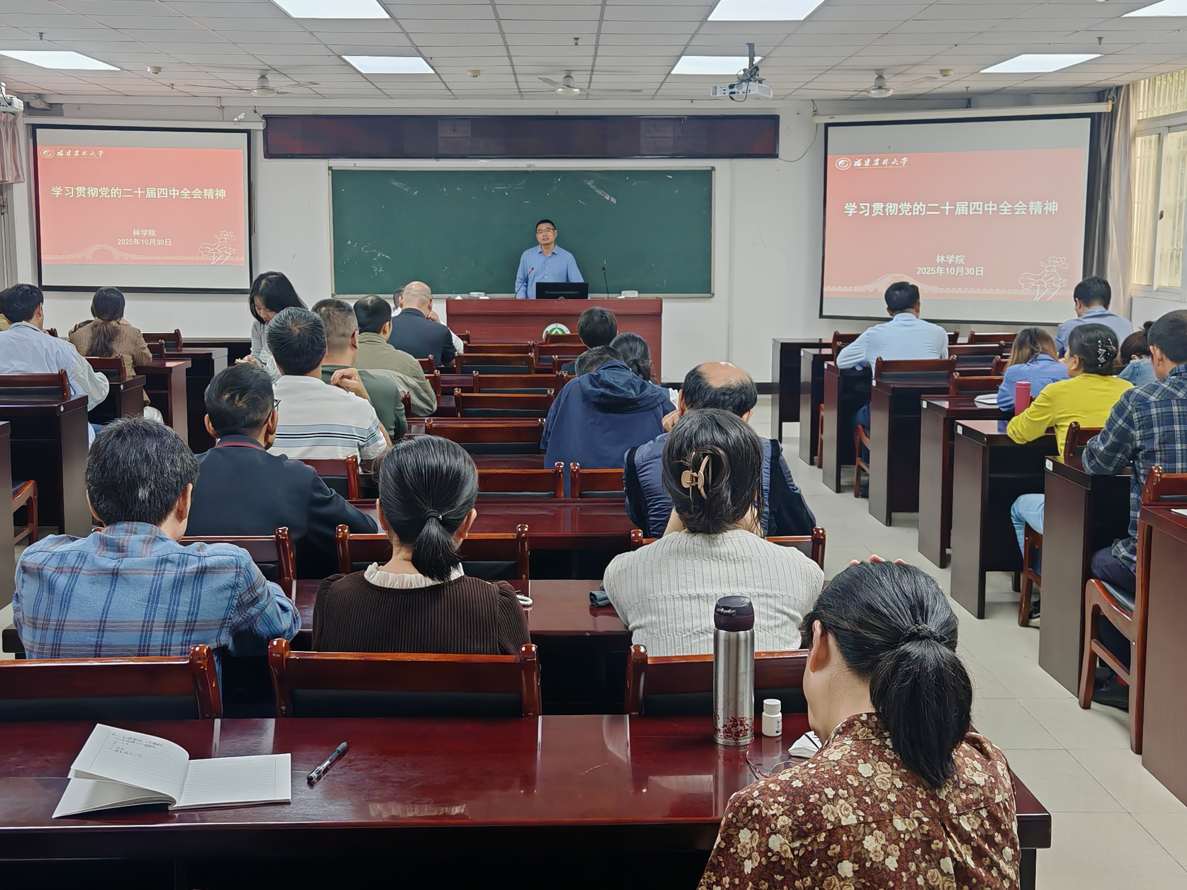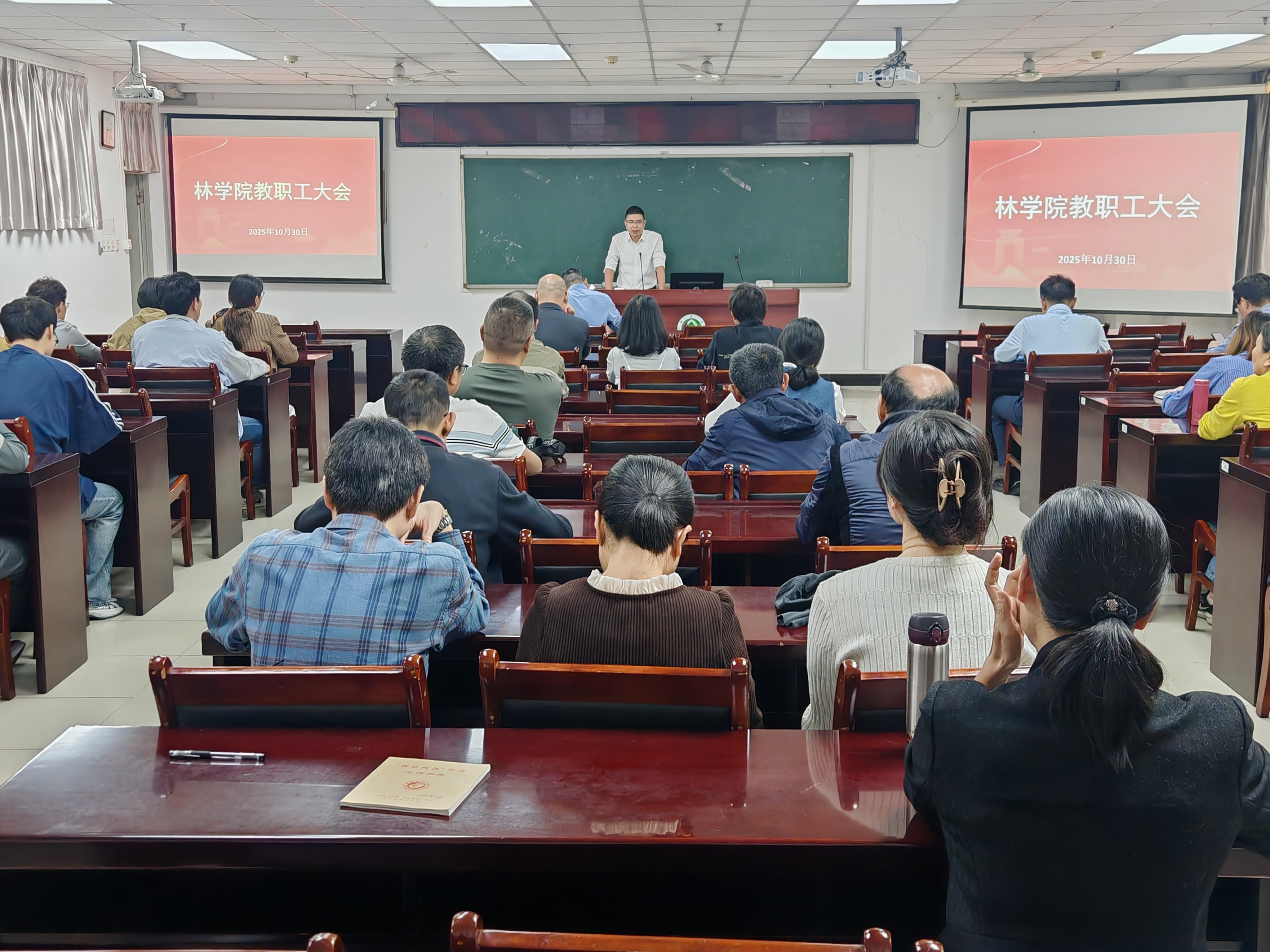 10月30日下午,林学院在田家炳楼C215召开全体教职工大会,集中学习党的二十届四中全会精神,传达学校近期重要会议精神,并部署学院下一阶段重点工作。会议由学院党委副书记(主持工作)余坤勇主持。
