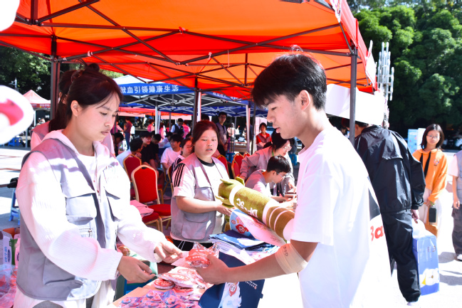 广大师生积极响应号召,在献血点前排起爱心长龙。献血队伍中既有以身作则的领导干部和专任教师,以躬身践行彰显奉献本色,也有朝气蓬勃的青年学子,用热血书写青春担当。既有多次参与、经验丰富的“老将”,熟练配合、从容淡定,也有初次上阵、心情忐忑的“新兵”,或紧握拳头,或深呼吸,在指导下完成首次献血,以勇气践行爱心承诺。身影交织、爱心汇聚,共同绘就了秋日校园里最动人的画卷。
