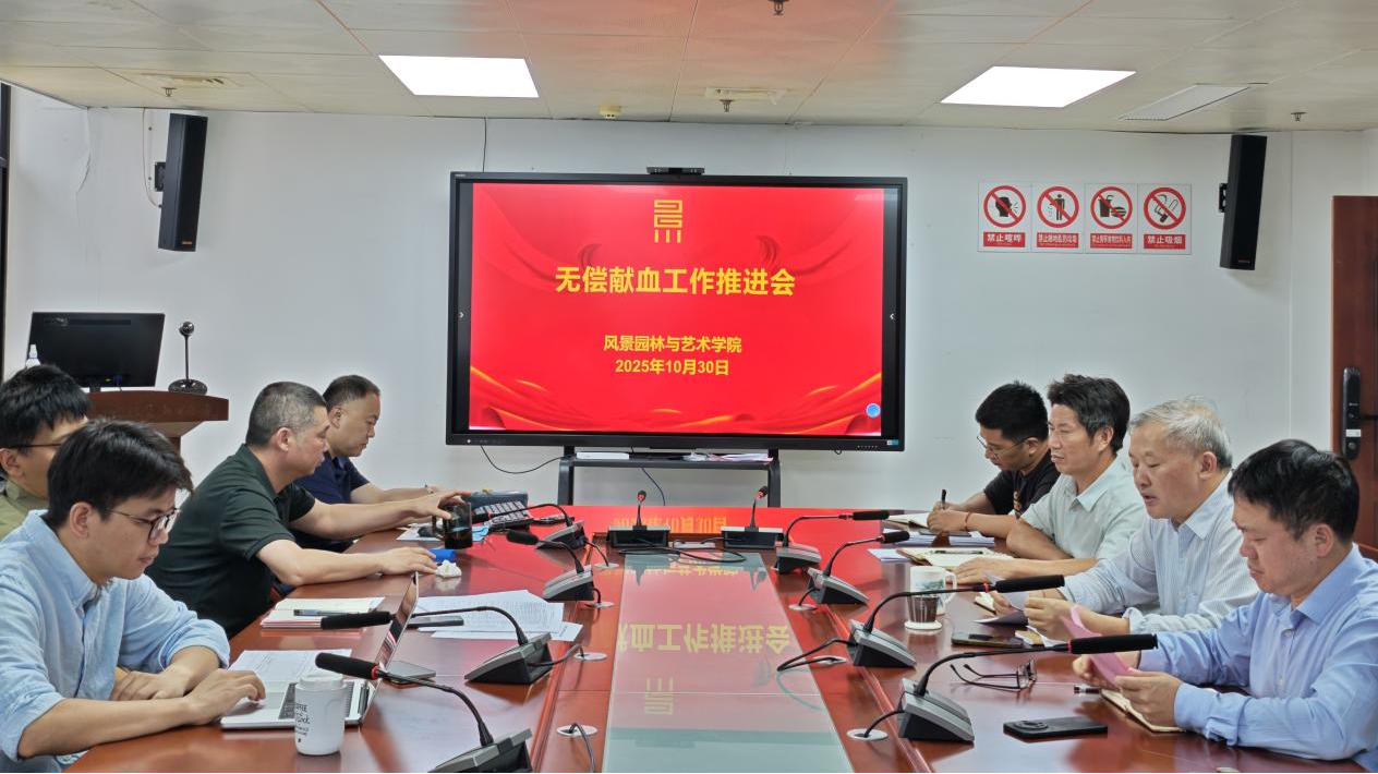 10月30日下午,风景园林与艺术学院在会议室召开无偿献血工作推进会,传达贯彻学校专题会议精神,具体部署下阶段工作,动员全院上下统一思想,迅速行动。院党委书记陈祖建出席会议并讲话,院党委副书记徐通明主持会议,全体政工干部参加。