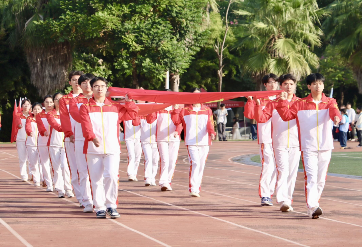 上午8时整,国旗护卫队手持国旗,步伐铿锵,率先入场。随后,校旗、会旗方阵依次入场,裁判组方阵、教工组方阵、各系(专业)方阵相继登场。各方阵设计别出心裁、号声高昂,迈着整齐的步伐向主席台行进。一支支队伍表演内容充实、编排新颖,既有青春活力的动感舞蹈,也有展现团队协作的创意变形,生动诠释了校区师生团结进取、昂扬向上的精神风貌。