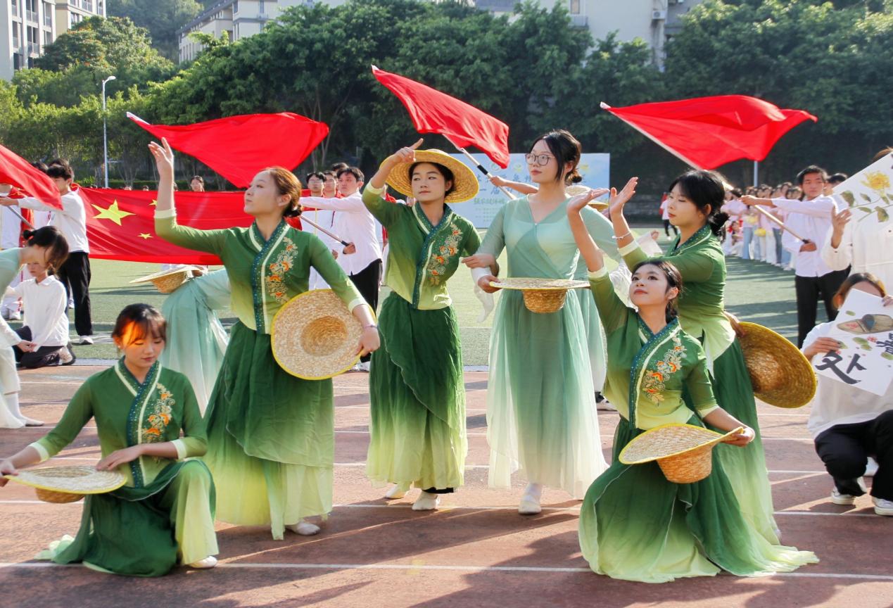 在文艺表演环节,金山学院梦飞艺术团带来了活力四射的舞蹈《Fun肆热爱》,尽显青春风采。紧接着,安溪茶学院(数字经济学院)绿苑艺术团献上舞蹈联唱《青衿绘衣·乐享运动》,将传统意蕴与体育活力巧妙融合,为现场观众带来一场视听盛宴。