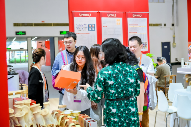 在新品种展区,安溪茶学院展示的茶叶深加工创意与衍生产品,茶粮食制品、茶休闲食品、茶化妆品、保健茶饮料等,体现茶与其他行业的有机结合,成功拓展了茶的边界,将传统农产品引领至一个更为广阔的高价值产业链中。园艺学院联合合作企业共同育成的多类特色优质苦瓜新品种,涵盖耐热越夏、耐低温设施栽培、鲜食水果型及深加工型等专用品类,果色丰富且营养品质显著提升,满足了多元化种植与消费需求。通过现代分子育种与传统杂交技术,成功育成多个高产、优质、抗病抗逆性强且早中晚熟配套的番茄新品种,果实颜色丰富,在提升风味与营养品质的同时,有效增强了稳产性与适应性,已创造显著经济效益,有力推动番茄产业品种升级。农学院选育的多色花生优质品种,具有高产、高油酸、抗青枯病、抗黄曲霉的特点。生命科学学院的银耳新品种‘HT108’,成为福建首个食用菌航天育种新品种。这款航天银耳的子实体呈黄色,朵型圆整紧致,耳片厚实且内卷,鲜重平均增产为10%以上,其鲜品的总黄酮、总多酚、粗多糖含量分别较‘古田银耳Tr21’提高60.0%、55.6%、13.7%,表现出丰产性高、活性成分含量高的特点。银耳精神加工技术应用示范成效显著,银耳多糖提取技术提高银耳附加值300%。