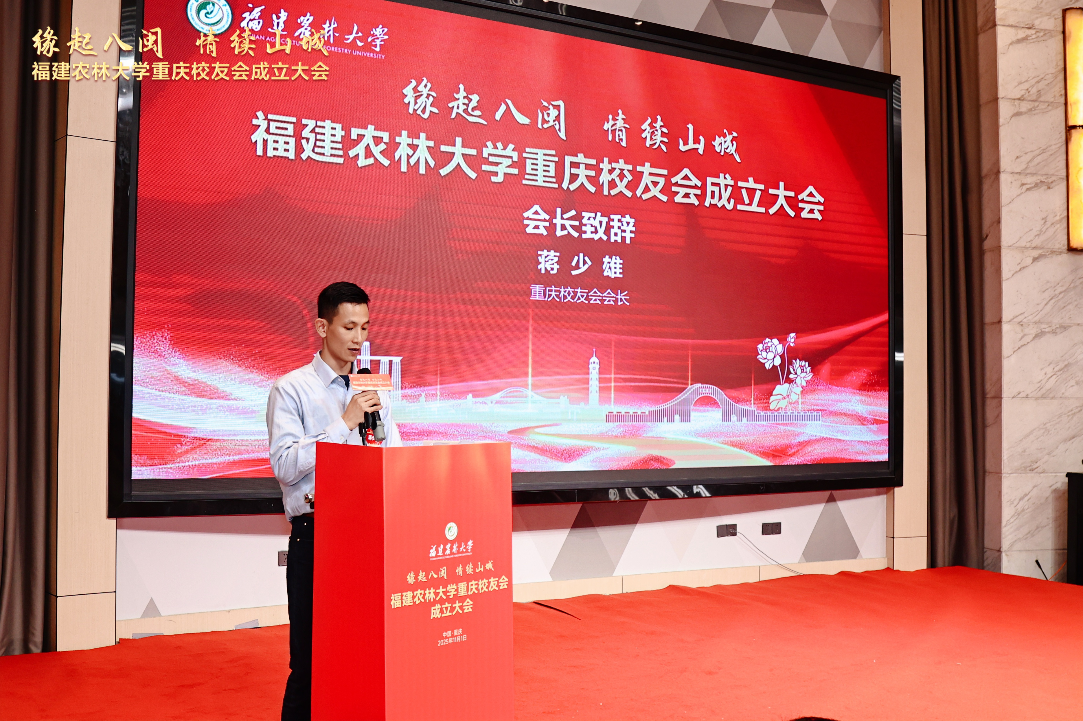林庆藩代表学校向大会成立致以最热烈的祝贺,并转达了校党委书记赖海榕、校长兰思仁对在渝校友的亲切问候和诚挚祝福。他详细向在场校友们传达了习近平总书记给williamhill英国官网全体师生的重要回信精神,深情回顾了williamhill英国官网的办学历程,介绍了学校近年来所取得的成就、各校区兴办情况及争创国家“双一流”高校建设情况,他还特别感谢长期关心支持母校发展的校友、参与筹建重庆校友会的骨干成员以及助力重庆校友会筹建的兄弟院校校友会和地方商会。他表示,重庆校友会的成立,标志着学校在西南地区的校友工作开启了新的篇章,为在渝校友搭建了一个联络感情、分享资讯、互助合作、共同发展的优质平台,他期待重庆校友会能够成为凝聚校友力量的“强磁场”、助力校友成长的“加油站”及联结渝闽、服务社会的“彩虹桥”,共同推动母校和重庆地区的繁荣发展。他向广大校友发出深情邀约,欢迎校友们常回“家”看看,期待与校友们相聚在明年九十周年校庆。