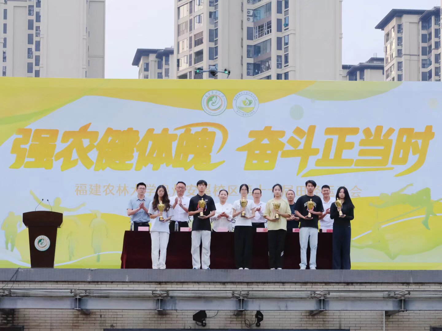 致辞结束后,张云帆宣读十佳运动员和最佳组织奖的表彰文件,洪涛宣读团体总分奖的表彰决定,与会领导们为获奖选手与组织颁奖。随后,主持人郑重宣布泉州安溪校区第十一届田径运动会圆满落幕。