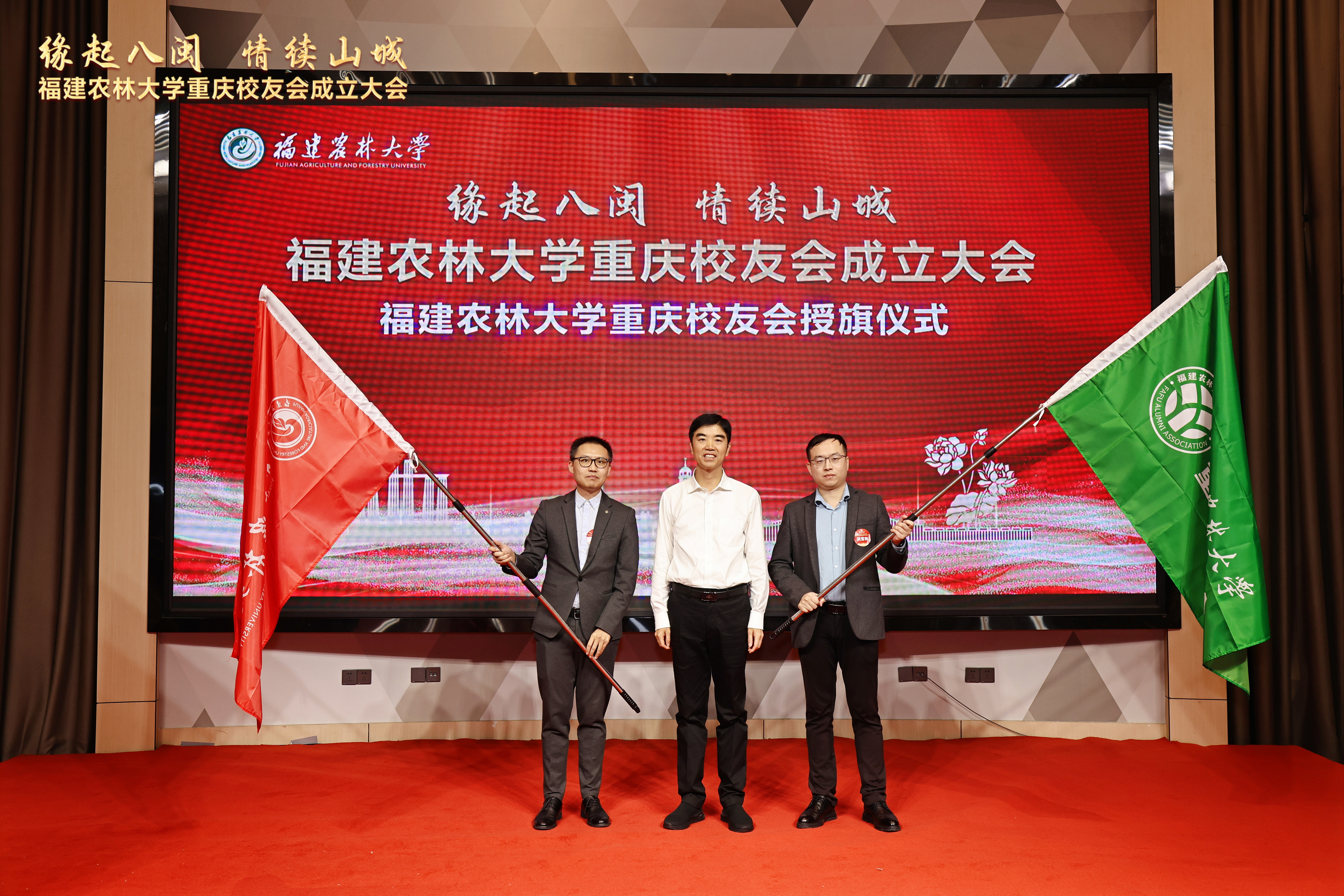 林庆藩、雷国铨代表学校分别向重庆校友会授旗、校友会骨干成员授牌,并为重庆校友之家揭牌。