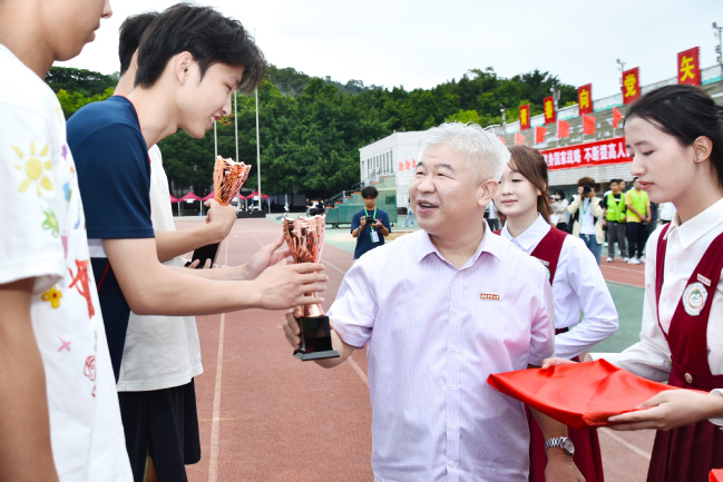 兰思仁校长为获得教工田径团体总分前十名的代表队颁奖