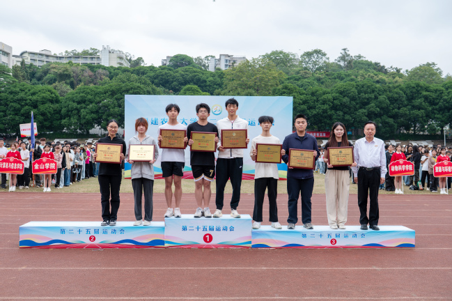 校党委曾华平副书记为获得教工男子组田径团体总分前六名的代表队颁奖