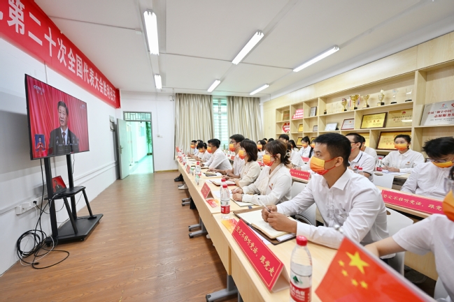 校党委书记王建南,校党委副书记、校长兰思仁,校党委副书记曾华平,校党委常委、校纪委书记邱应龙,校党委常委、副校长林庆藩、唐振鹏,与学校中层干部、师生代表在禧强楼学术报告厅共同观看开幕会的直播实况,认真聆听习近平总书记的重要讲话。校党委副书记柯瑞清在校团委会议室与师生一同观看。