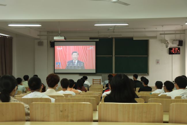 10月16日,中国共产党第二十次全国代表大会在北京隆重开幕。上午10时,材料工程学院组织师生在旗山校区大报告厅、综合楼423会议室、教学实验楼108室、“一站式”学生社区、各实验室、实习实践基地、学生宿舍等集中收听收看大会盛况。