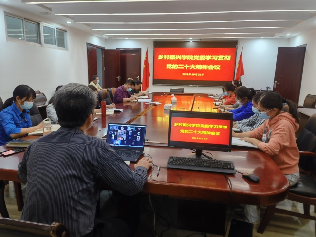 会议要求,要把学习党的二十大精神与学院发展实际紧密联系起来,要把党的二十大精神转化为推动学院高质量发展和服务乡村振兴的实际行动,落实到学院人才培养、理论研究、社会服务等各项具体工作中;要按照校党委的要求和属地部署,脚踏实地,立足当前,做实做细,统筹疫情防控和扎实推进学院各项具体工作,严格贯彻落实校党委关于疫情防控各项措施,慎终如始抓好疫情防控,统筹抓好年底各项工作,及早谋划明年工作。
