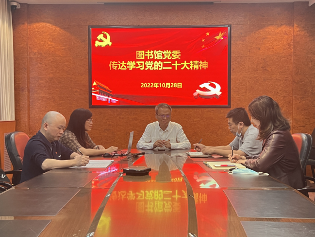 会议指出,党的二十大是在全党全国各族人民迈上全面建设社会主义现代化国家新征程、向第二个百年奋斗目标进军的关键时刻召开的一次十分重要的大会,学习宣传贯彻党的二十大精神是当前和今后一个时期的首要政治任务,图书馆全体党员干部要认真落实校党委常委会提出的要求,深入学习领会党的二十大精神。