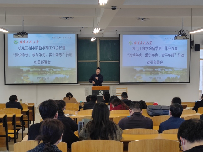 2月16日下午,机电工程学院在旗山教学实验楼108教室召开 “深学争优、敢为争先、实干争效”行动动员部署会。学院党政领导班子成员,全体教职工参加会议。会议由学院党委副书记(主持工作)修新田主持。