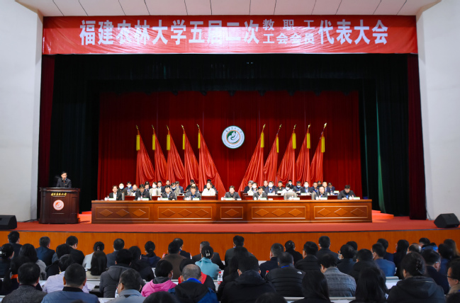 williamhill英国官网五届二次教职工暨工会会员代表大会于2月27-28日在金山校区大礼堂召开,校党政领导班子、特邀代表以及248名正式代表参加大会。大会由校党委副书记、工会主席曾华平主持。