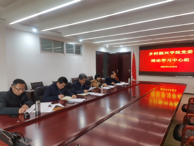 3月29日,乡村振兴学院党委理论学习中心组学习贯彻习近平总书记重要讲话精神和全国“两会”精神。学院党委理论学习中心组全体成员参加会议,会议由学院党委书记陈清西主持。
