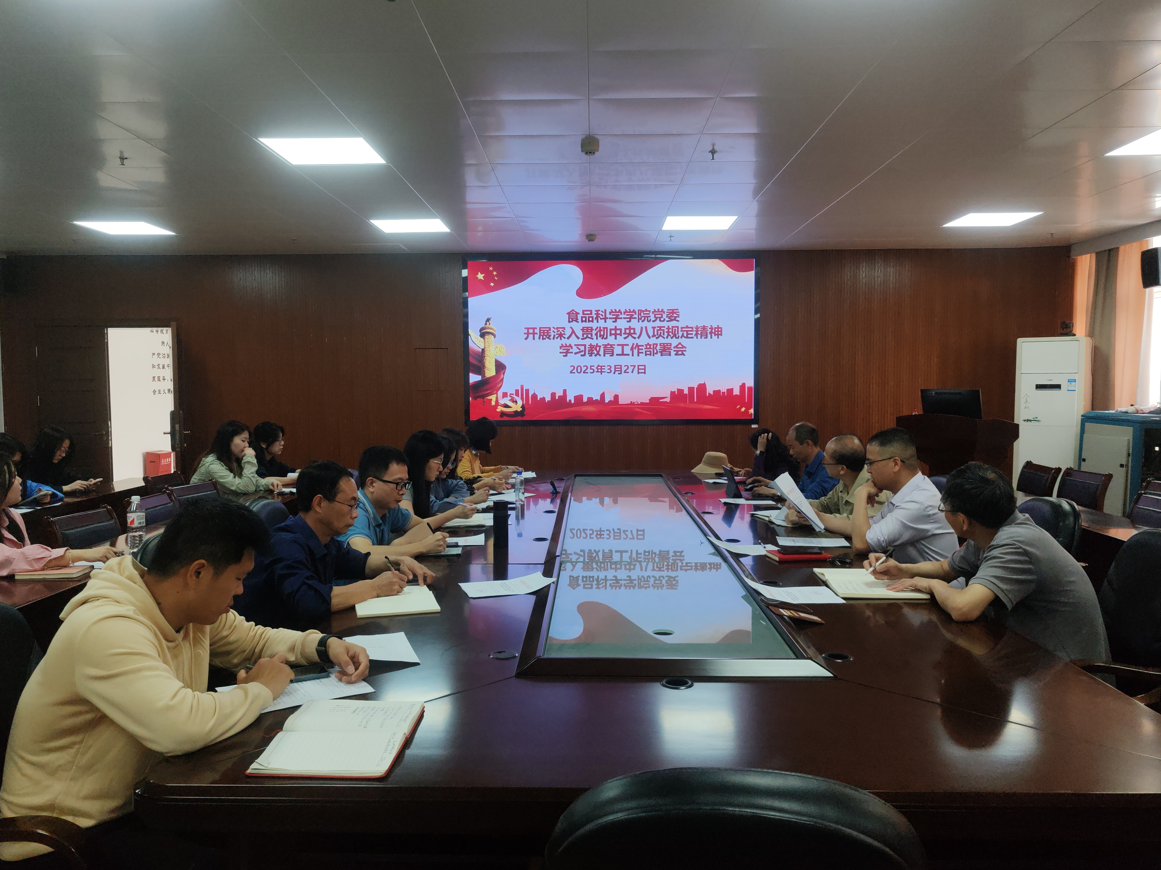 3月27日,食品科学学院党委开展深入贯彻中央八项规定精神学习教育工作部署会,会议由学院党委书记苏健涵主持,学院党政领导、组织员、各党支部书记参加了会议。