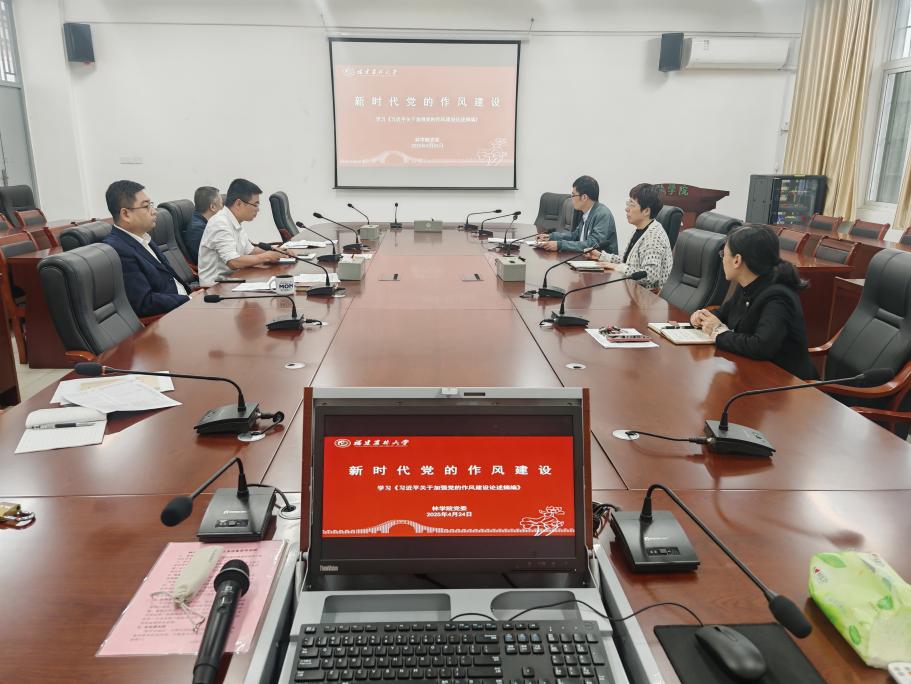 4月24日下午,林学院党委召开理论学习中心组(扩大)会议,深入学习领会习近平总书记关于加强党的作风建设的重要论述,学院党委副书记(主持工作)余坤勇主持会议并领学,学院党委委员、科级干部参加会议。