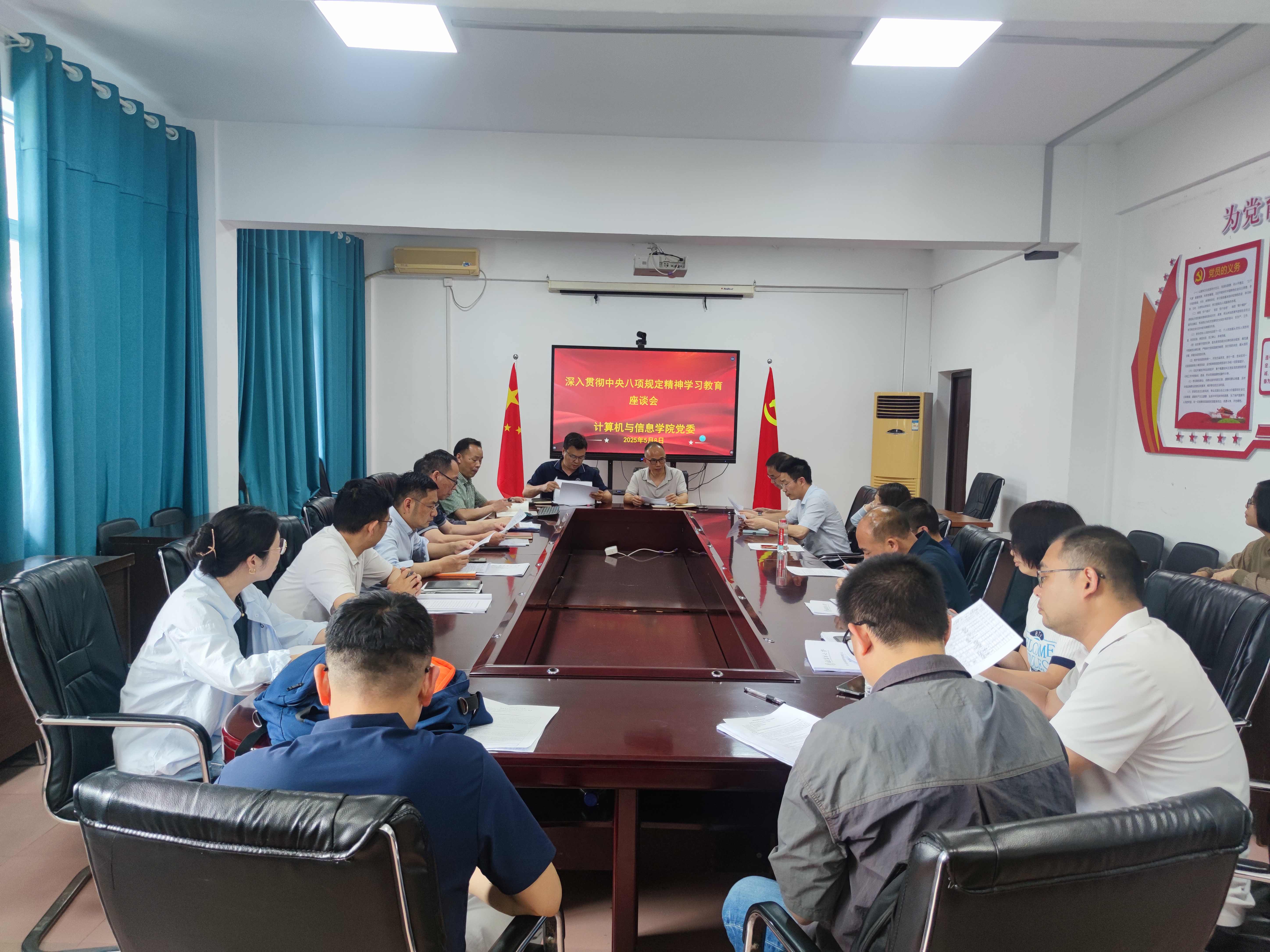 5月8日下午,计算机与信息学院党委召开深入贯彻中央八项规定精神学习教育座谈会,认真听取教师代表对学院党委领导班子及班子成员贯彻中央八项规定及其实施细则精神、深化作风建设的意见建议;教师代表共计28人参加了座谈会,座谈会由院党委书记钟一文主持。