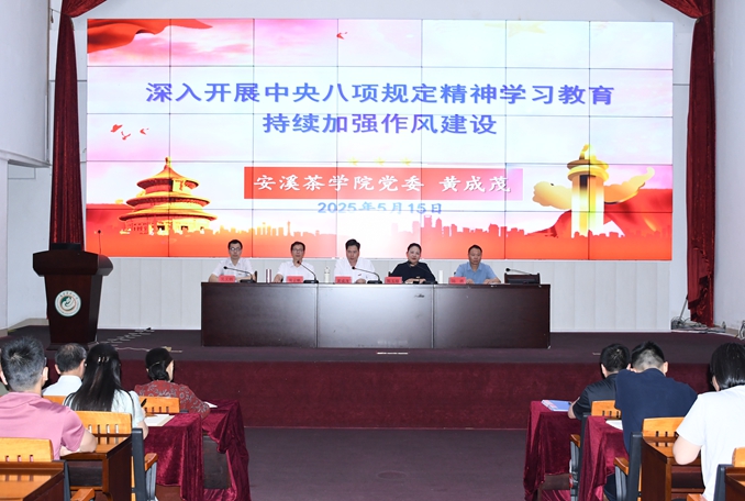 为深入推动全体党员、教师深刻领会中央八项规定精神。5月15日下午,数字经济学院(安溪茶学院)党委书记黄成茂为全体教职工讲授专题党课,主题为“深入贯彻中央八项规定精神学习教育,持续加强作风建设”。