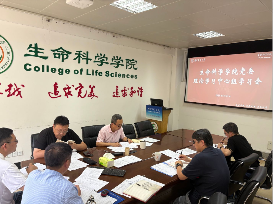 5月21日下午,生命科学学院党委在生科楼404召开理论学习中心组学习会,深入学习贯彻习近平总书记关于加强党的作风建设的重要论述精神。会议由院党委书记余顺兴主持,院领导班子成员、理论学习中心组成员参加会议,分别谈了学习体会和贯彻思路。