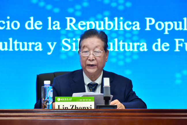 国家菌草工程技术研究中心首席科学家林占熺发言