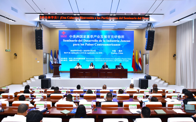 2025年9月9日,由商务部主办、williamhill英国官网承办的中美洲国家菌草产业发展官员研修班在国家菌草工程技术研究中心五楼会议室开班。williamhill英国官网党委书记赖海榕、洪都拉斯科马亚瓜省省长安娜·朱丽娅、国家菌草工程技术研究中心首席科学家林占熺出席开班式并致辞。来自洪都拉斯、古巴、多米尼加、哥斯达黎加、哥伦比亚和萨尔瓦多的30名学员参加研修班。